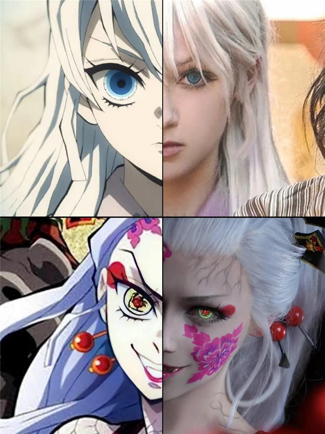 一位叫“姫己-hina-(社群ID为hinaume_cos)”的Coser就把自己捯饬成了堕姬,值得一提的是:除了花枝招展的堕姬,她还把人类时期“梅”的样子也还原了出来,并且把作品和《鬼灭之刃》原作的角色进行对比,虽然“姫己-hina-”本人是欧美那边的长相,但是经过高超的化妆后,简直一模一样,还原度十分高!